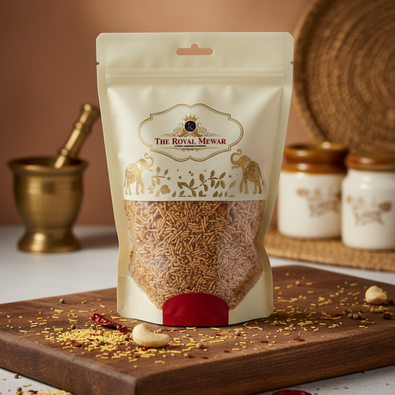 Ratlami Sev – A bold and spicy gram flour snack, famous for its signature crunch and authentic Ratlam-style flavour. Perfect for tea-time munching or adding zing to chaats.